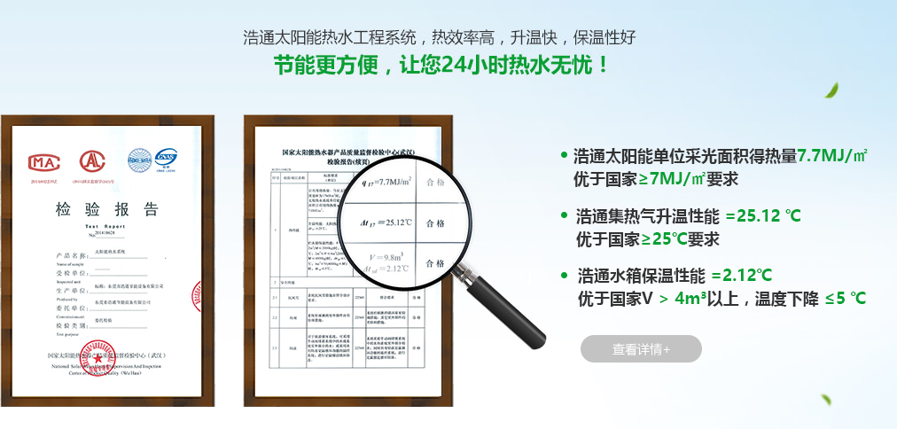 • 浩通太陽能熱水系統通過國家質量監督檢測中心檢測合格證書
